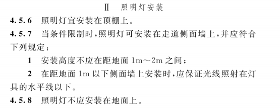 10.3.4 疏散照明灯具应设置在出口的顶部、墙面的上部或顶棚上;备用照明灯具应设置在墙面的上部或顶棚上。