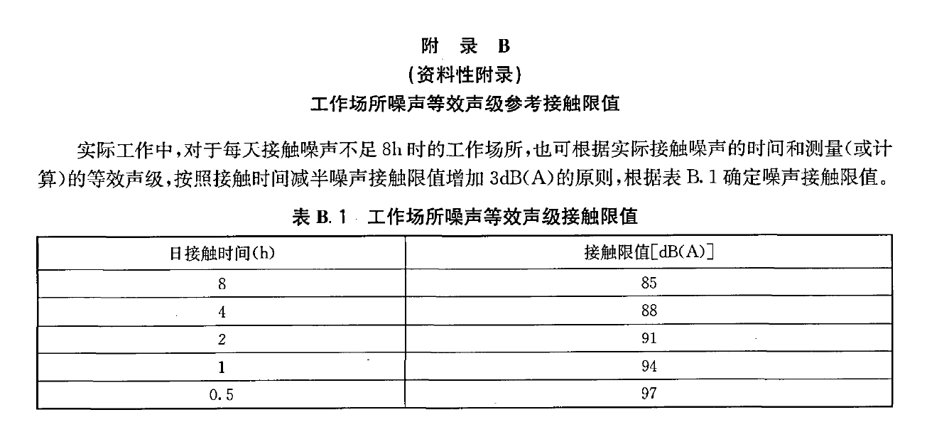 工作场所职业病危害作业分级 第4部分:噪声 – GBZ/T 229.4-2012的附录B截图