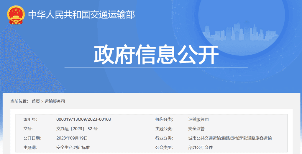 为指导各地科学判定、及时消除道路运输企业和城市客运企业安全生产重大事故隐患,根据《中华人民共和国安全生产法》《中华人民共和国道路交通安全法》《中华人民共和国道路运输条例》等法律法规,我部组织编制了《道路运输企业和城市客运企业安全生产重大事故隐患判定标准(试行)》,现印发给你们,请认真贯彻执行。