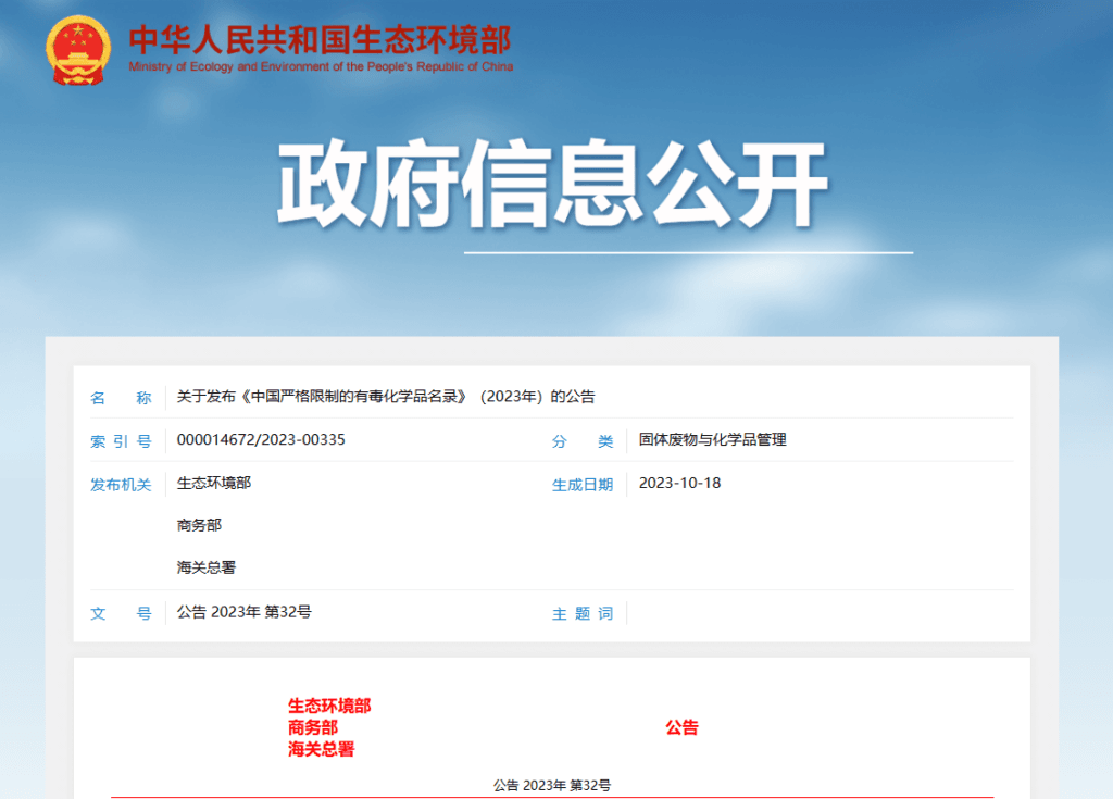 关于发布《中国严格限制的有毒化学品名录》(2023年)的公告