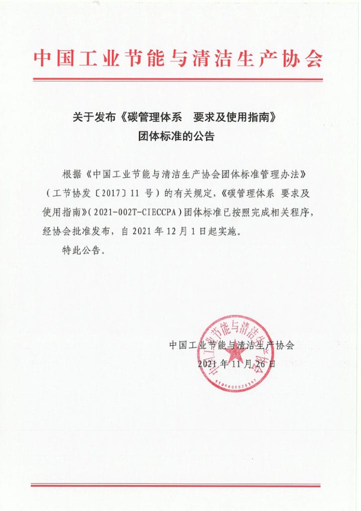 《碳管理体系要求及使用指南》是全球首个综合性的碳管理体系标准,该标准系由上海环交所、上海质量管理科学研究院牵头起草,复旦大学、南京大学等十余家单位共同制定,由中国工业节能与清洁生产协会发布。