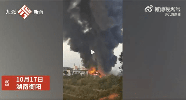 10月17日,湖南衡阳。网传衡南县松江镇工厂发生爆炸,视频显示:现场浓烟滚滚,有明火燃烧。晚9时,衡南县融媒体中心发布情况通报:此事系一化工厂生产车间冰机发生爆炸,经现场救援人员初步确认,暂无人员伤亡,爆炸原因正在进一步调查中。