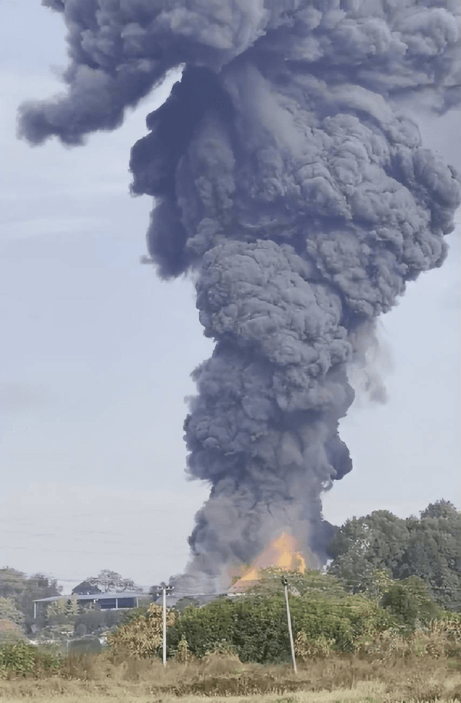 湖南长沙县一酒精厂发生火灾 现场浓烟滚滚