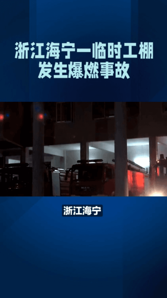 浙江海宁市一临时工棚发生爆燃事故 致5死