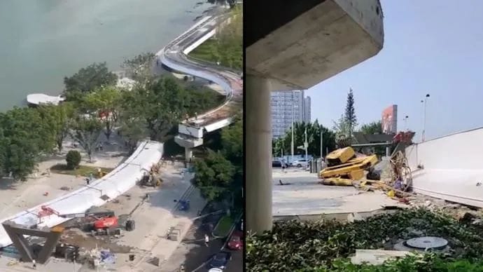 四川德阳一在建人行天桥封闭施工发生事故 致1死2伤