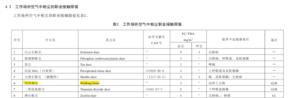 - 工作场所有害因素职业接触限值 第1部分:化学有害因素 – GBZ 2.1-2019(限值部分截图)