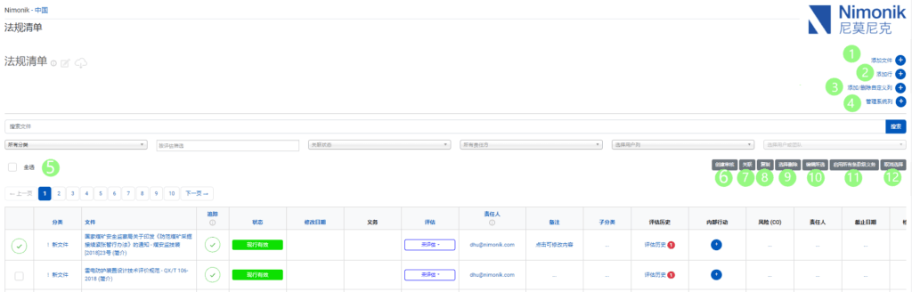 Nimonik 很高兴地宣布对法规清单页面的布局进行了一系列改进。 这些更改将使用户能够更轻松地找到和使用页面提供的各种功能。 主要变化包括: