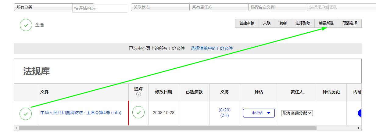 您的法规清单的编辑页面上的设置决定了自动添加哪些新文件。 这些设置可以随时更新,并且不会影响您正在跟踪的文件和条款的更新行动。