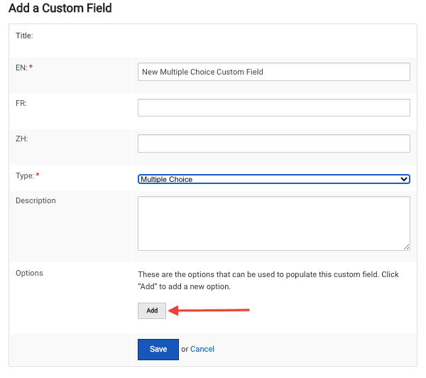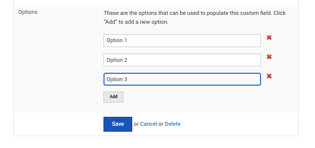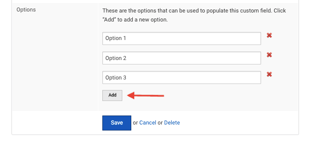 同时出现一个文本字段,您可以在其中输入用户在填充自定义列时可以选择的选项。