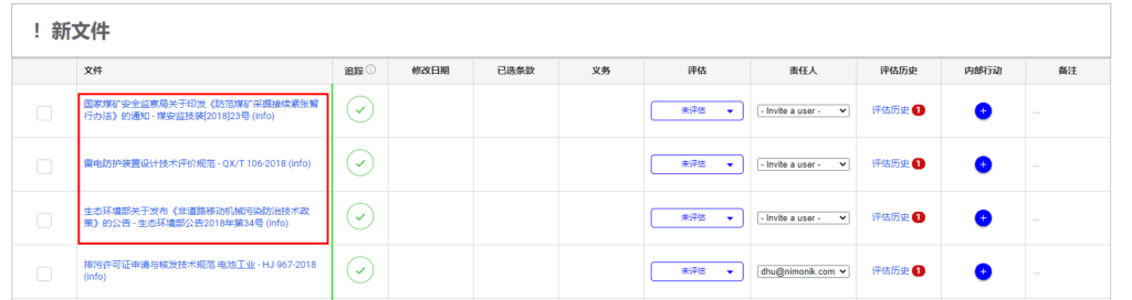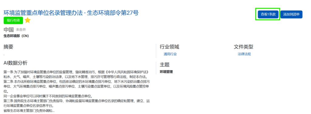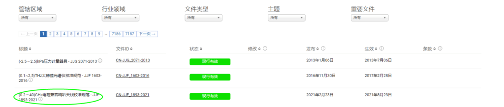 Nimonik 法规库中的所有文件有一个汇总的页面,可以通过单击文件名称或文件ID来查阅。