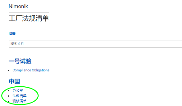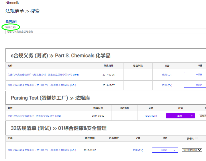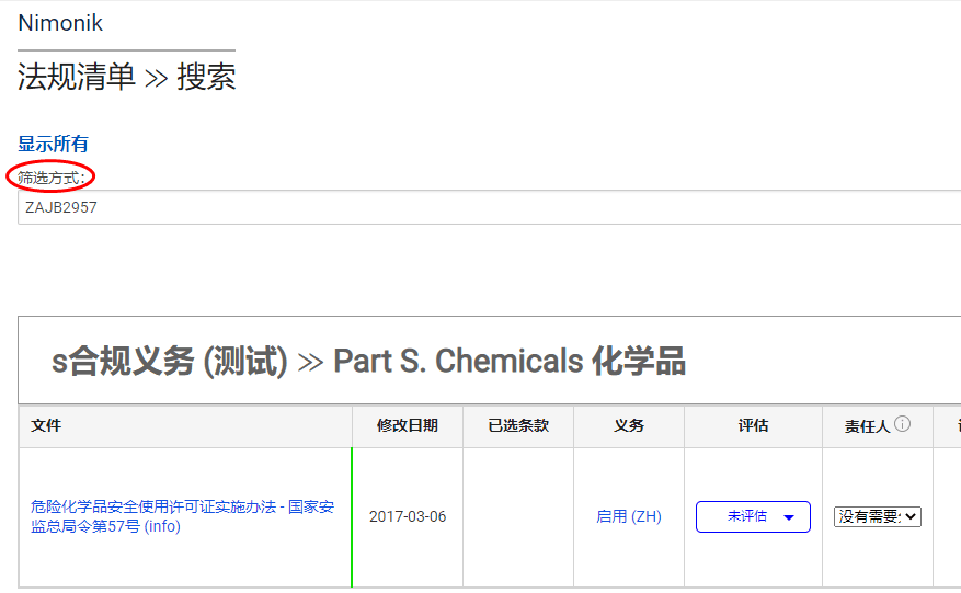 在法规清单中搜索文件