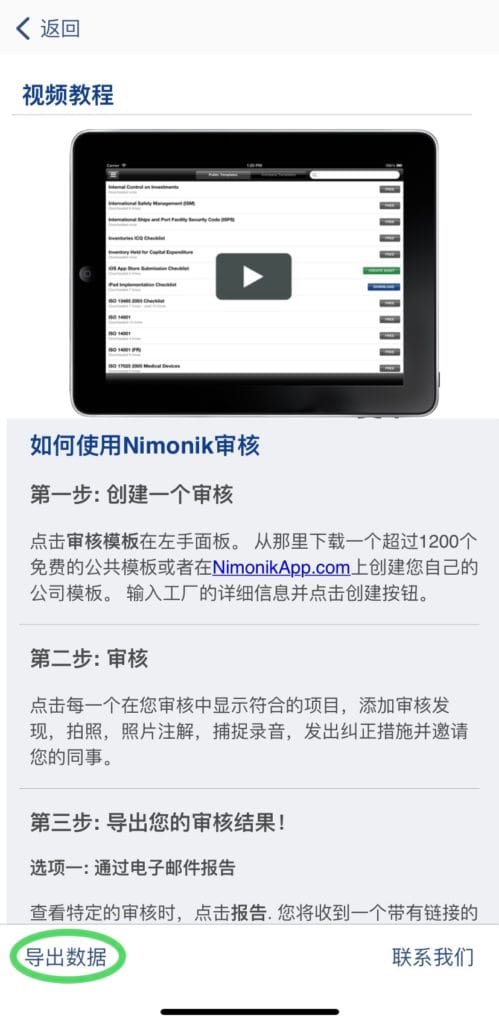 - 立即联系Nimonik支持。您可以通过单击应用程序帮助部分中的“联系支持”按钮,或通过发送电子邮件至support@nimonik.com来实现此目的。收到您的消息后,我们的支持代表将引导您完成其余的流程。
